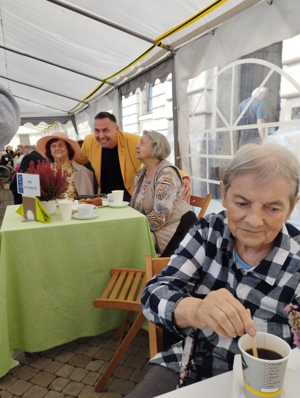 „JUBILEUSZOWE POŻEGNANIE LATA U HELCLÓW 2025”. Oglądaliśmy Konkurs- „Powróćmy jak za dawnych lat”, występy poszczególnych DPS-ów. Była oprawa artystyczna, m.in. występ kabareciarza Andrzeja Kozłowskiego. Była miła atmosfera i poczęstunek.