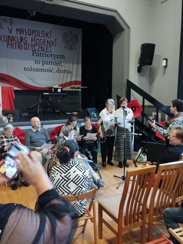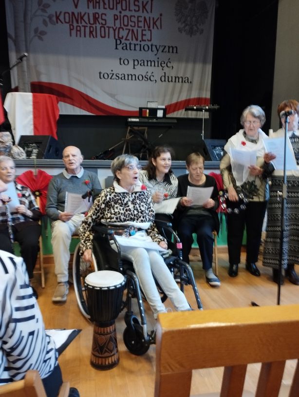 Pojechaliśmy za Alwernię do Babic na finał Konkursu Piosenki Patriotycznej. Znaleźliśmy się wśród 11-tu finalistów. Występ się udał. Dostaliśmy dyplom uczestnictwa i prezent. Mogliśmy obejrzeć ciekawe występy finalistów. Bardzo dobrze zorganizowane wydarzenie. Był poczęstunek – m.in. pyszna grochówka.