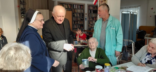 Mieliśmy ten zaszczyt , że odwiedził nas Jego Eminencja Kardynał K. Nycz. Ksiądz Kardynał spotkał się z mieszkańcami, pracownikami i Siostrami Służebniczkami. Interesował się życiem mieszkańców naszego Domu. Po wspólnej modlitwie w sali terapii zajęciowej Jego Eminencja udzielił wszystkim błogosławieństwa.